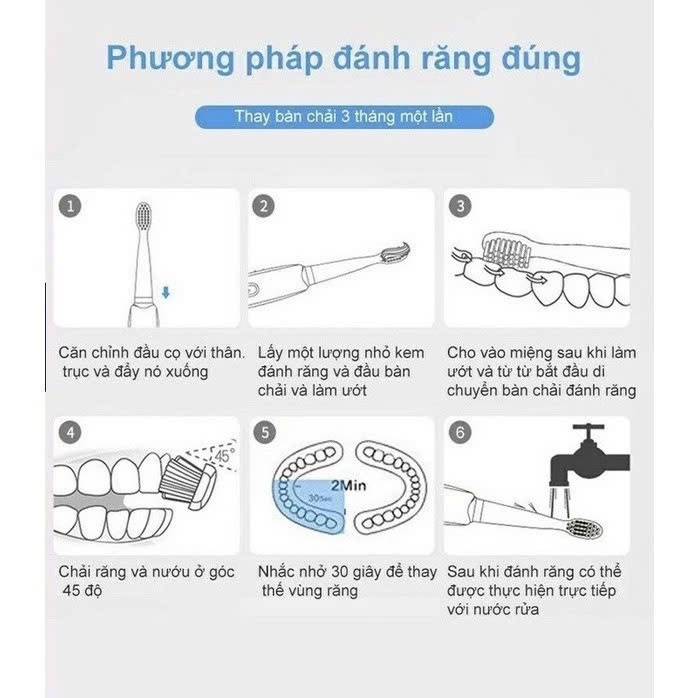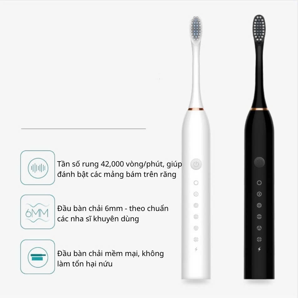 Bàn Chải Đánh Răng Điện YATASMART Thông Minh 6 Chế Độ Sóng Âm Tặng Kèm 4 Đầu Chải Thay Thế