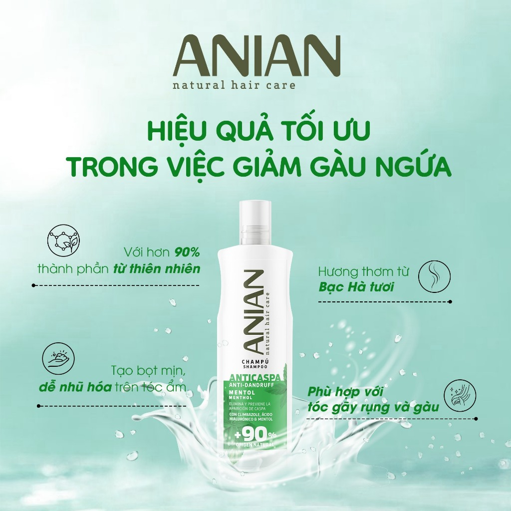 Dầu gội hỗ trợ giảm gàu từ tinh dầu Bạc Hà Shampoo Antidandruff Menthol ANIAN 400ML N001