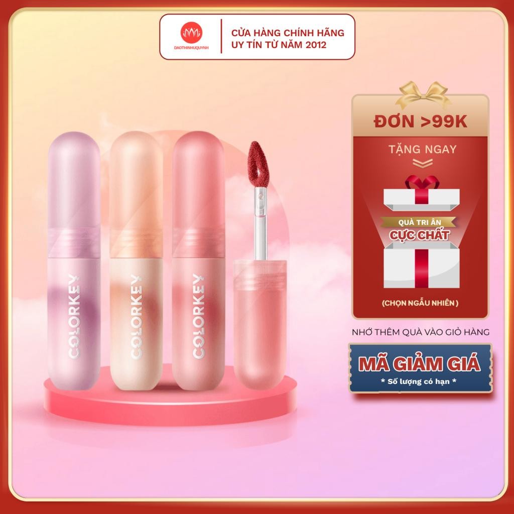Son môi COLORKEY Lip Mud Mousse Lip Stick màu nhung mờ xinh xắn 2g - son kem bùn color key lâu trôi