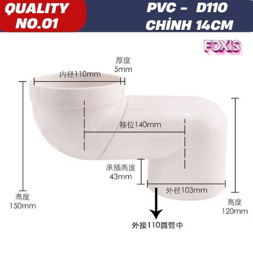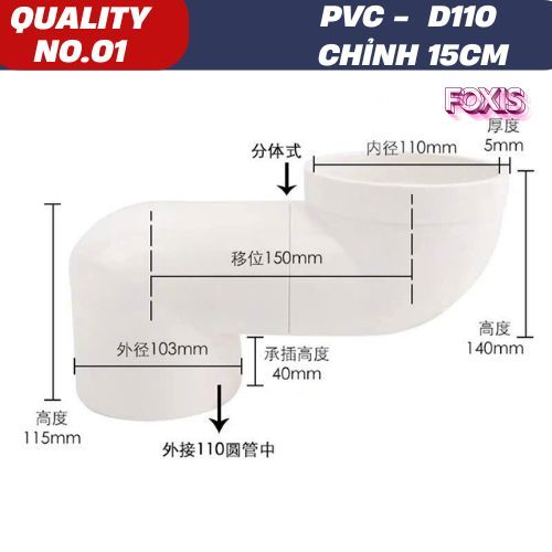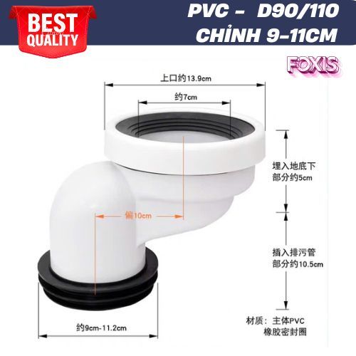 Thiết bị chỉnh lệch tâm bồn cầu, loại chuyển dịch tối đa 5cm, Phù hợp ống thoát nước phi 90,110mm
