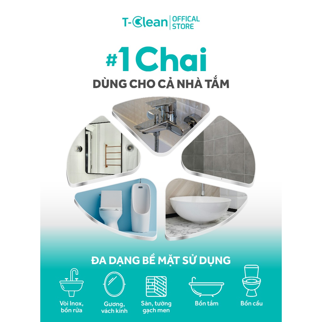 T-Clean Xịt Tẩy Đa Năng Bồn Cầu Sen Vòi Chậu Rửa Gương Kính – 90% Tự Nhiên, Không Hại Da Tay