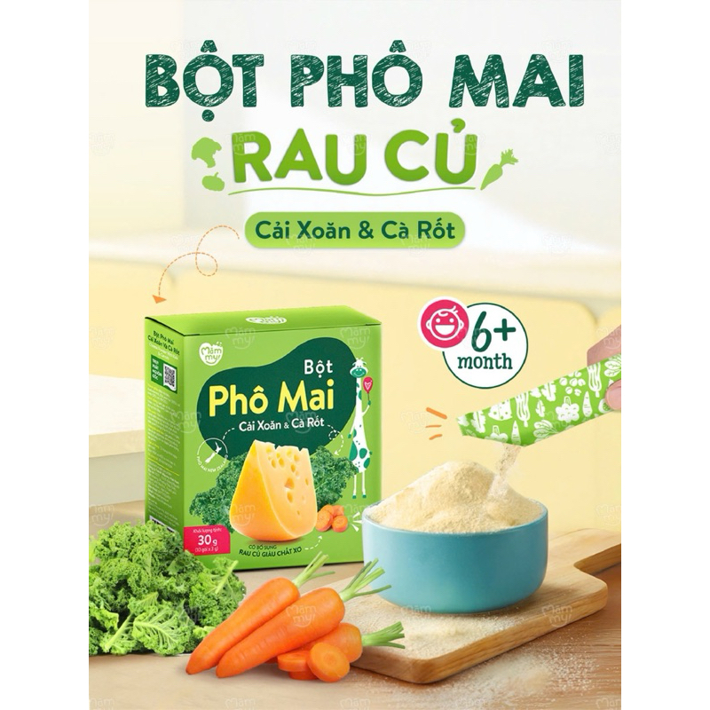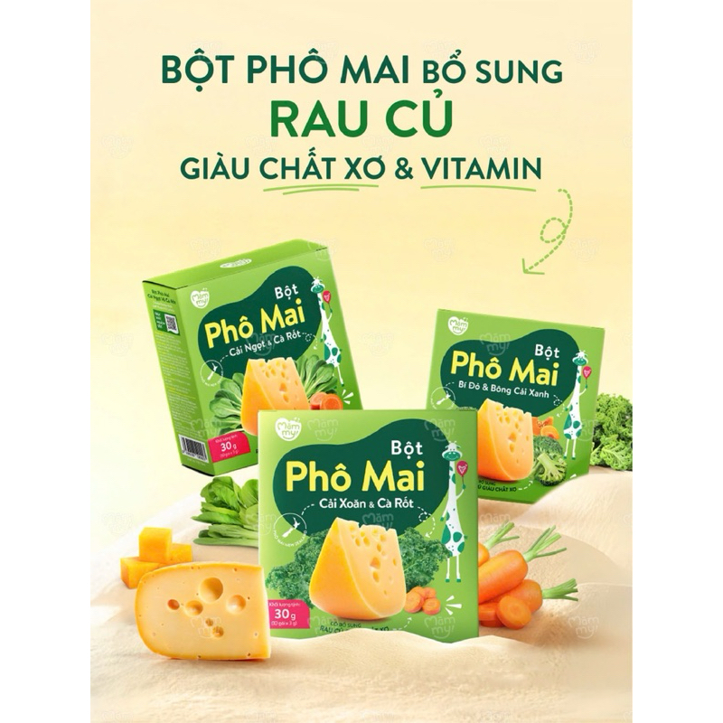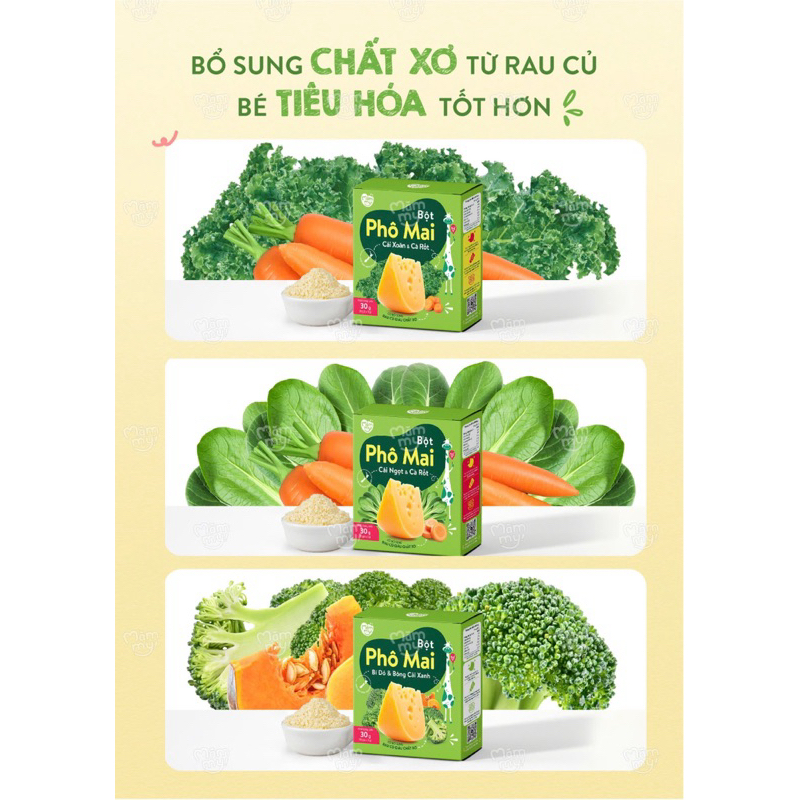 Bột Phô Mai Mămmy RAU CỦ- BỔ SUNG CHẤT XƠ CHỐNG TÁO BÓN, rắc cháo cho bé ăn dặm, Hộp 10 gói