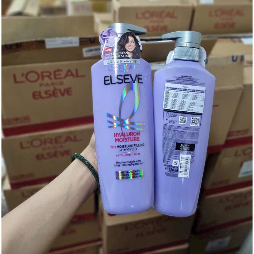 Combo Dầu Gội & Xả Phục Hồi Tóc Suôn Mượt L'oreal Elseve Hyaluron Moisture 72H 400ml/620ml