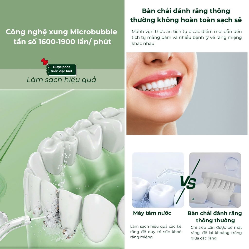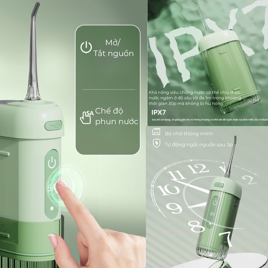 Máy tăm nước cầm tay IPX7 Chống Nước – Làm Sạch Kẽ Răng, Sạc USB, Mini Du Lịch- Tặng Kèm 5 Đầu Phun- Bảo Hành 12 tháng