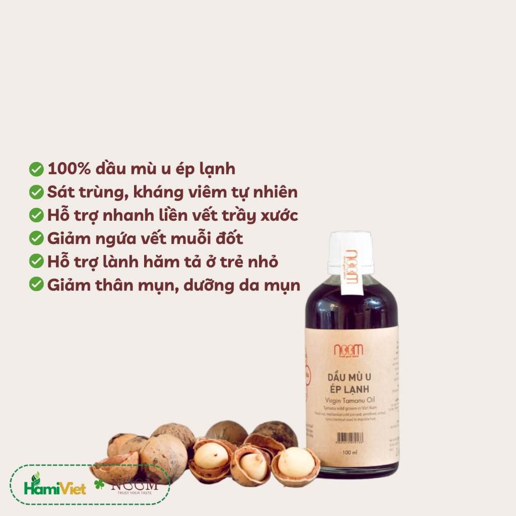 Dầu mù u ép lạnh Noom nguyên chất hỗ trợ sát trùng, kháng viêm ngoài da, dưỡng da tự nhiên