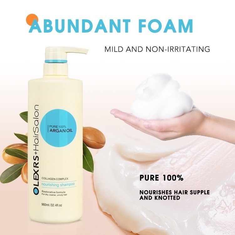 Cặp dầu gội xả Olexrs+HairSalon Argan Oil Collagen, Dầu gội phục hồi tóc, chống rụng kích mọc tóc