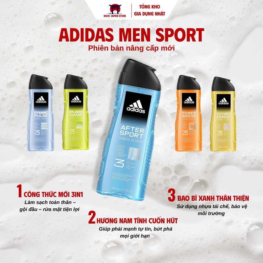 Sữa Tắm Gội 3in1 Adidas 400ml Cho Nam - Tiện Lợi, Sạch Sâu, Hương Nam Tính