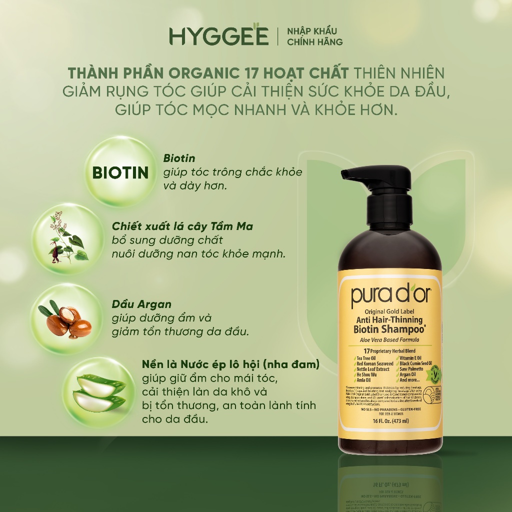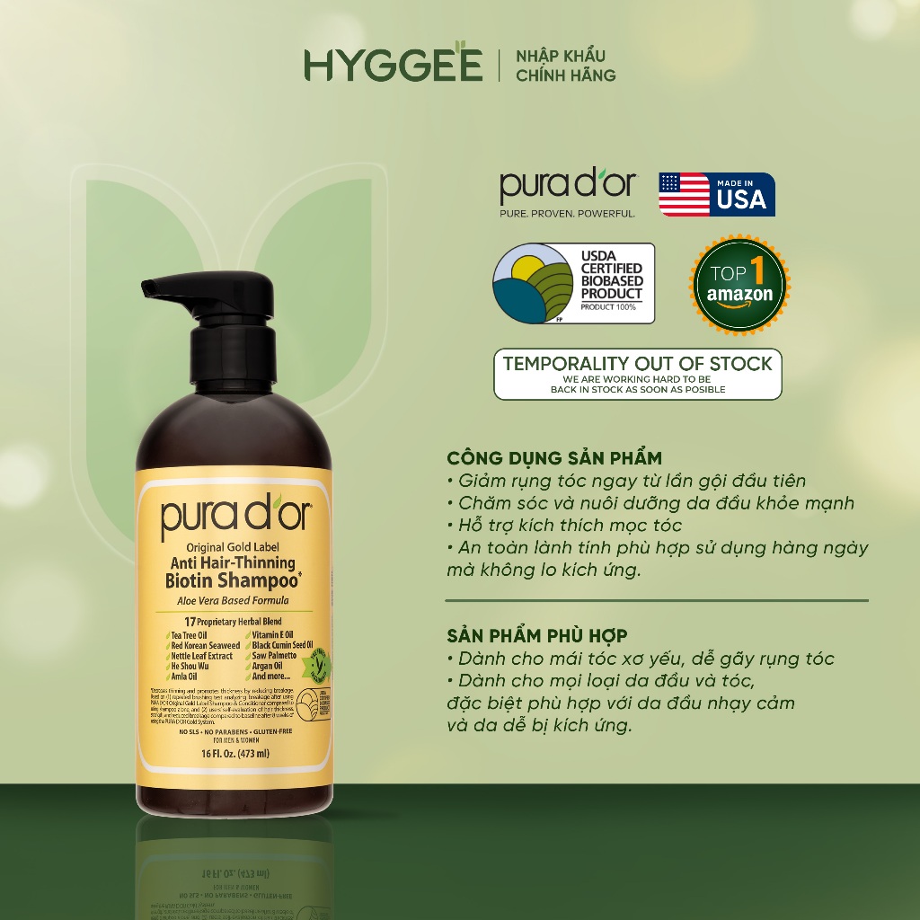 Dầu Gội Biotin Pura D’or Original Gold Label 236/473ml - – Nuôi Dưỡng & Chăm Sóc Tóc