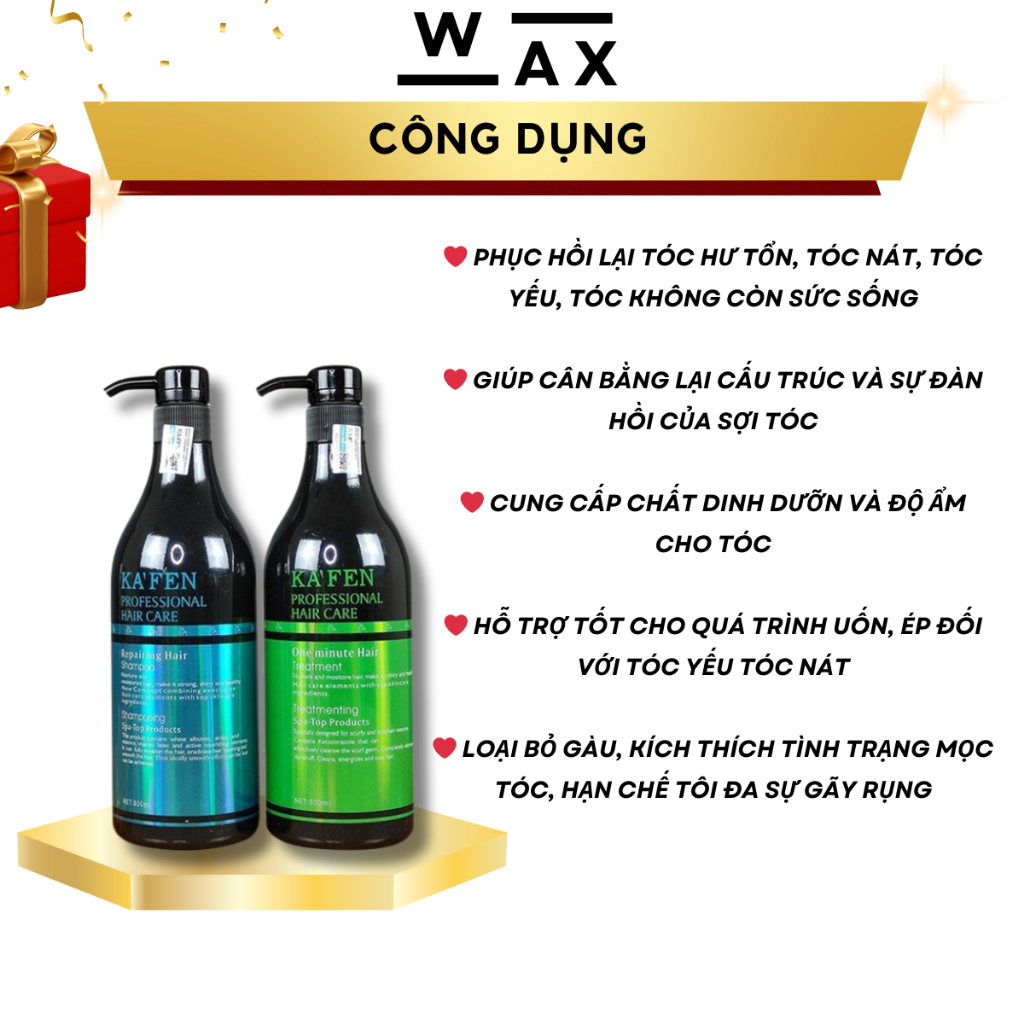 Cặp dầu gội xả KAFEN 800ml xanh phục hồi tóc khô xơ hư tổn chăm sóc tóc căng bóng đàn hồi
