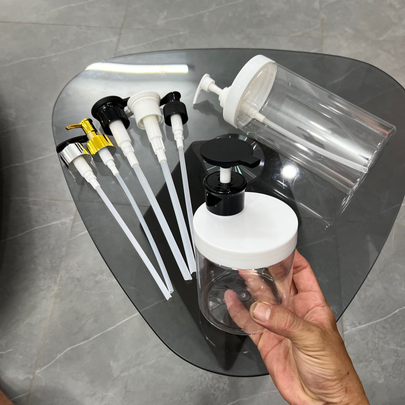 HỘP NHỰA NẮP VÀNG ĐỰNG KEM - Hủ nắp kèm VÒI NHẤN PUM dầu gội - HỦ PET MỸ PHẨM 500g 500ml 1lít 200ml 400g 200g 100g
