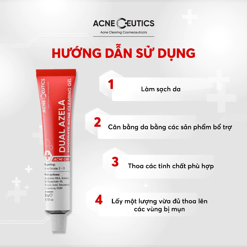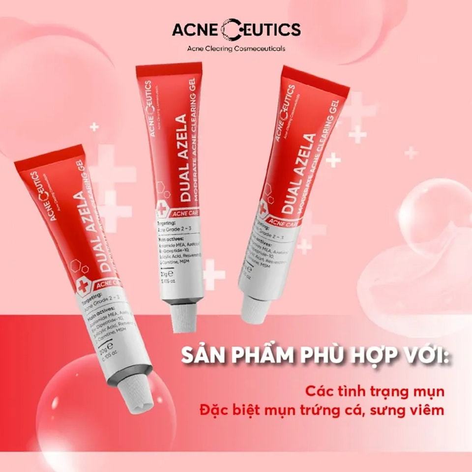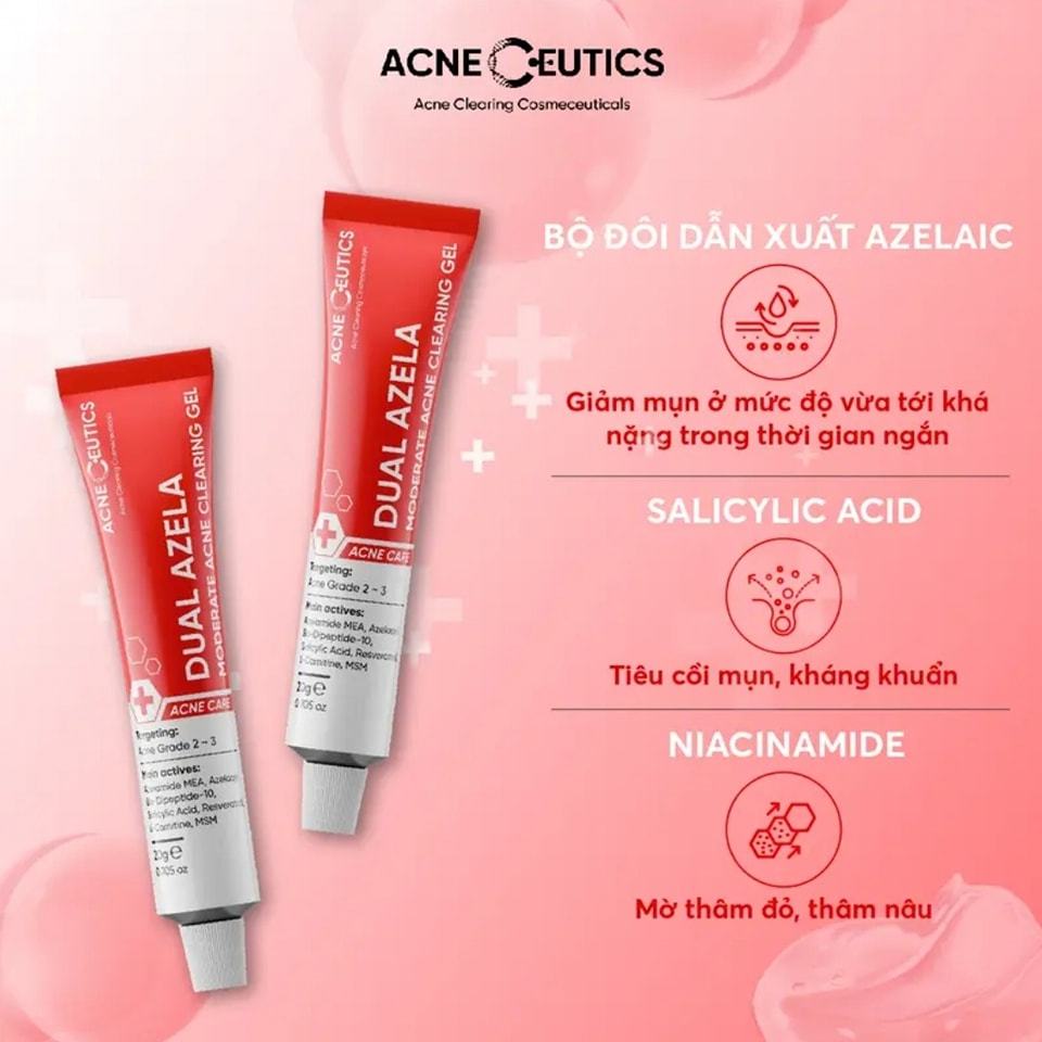 Gel Mụn ACNECEUTICS Dual Azela Giảm Và Ngăn Ngừa Mụn, Giảm Thâm 20g