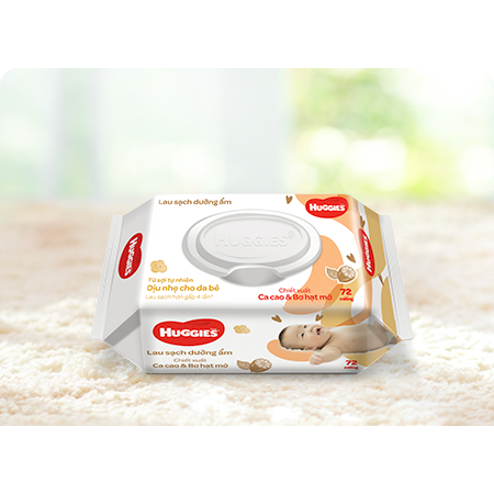 Thùng 12 gói Khăn ướt Huggies không mùi (80 miếng/gói) , bơ cacao hạt mỡ (72 miếng/gói)