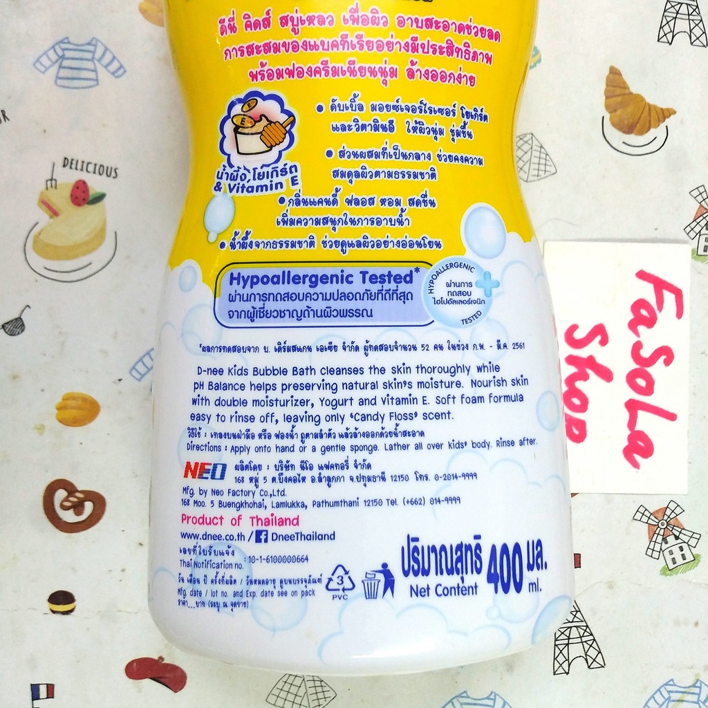 Sữa tắm toàn thân trẻ em D-NEE KID 400ml Thái Lan bubble bath gội mật ong hình thú thơm bé dnee dni