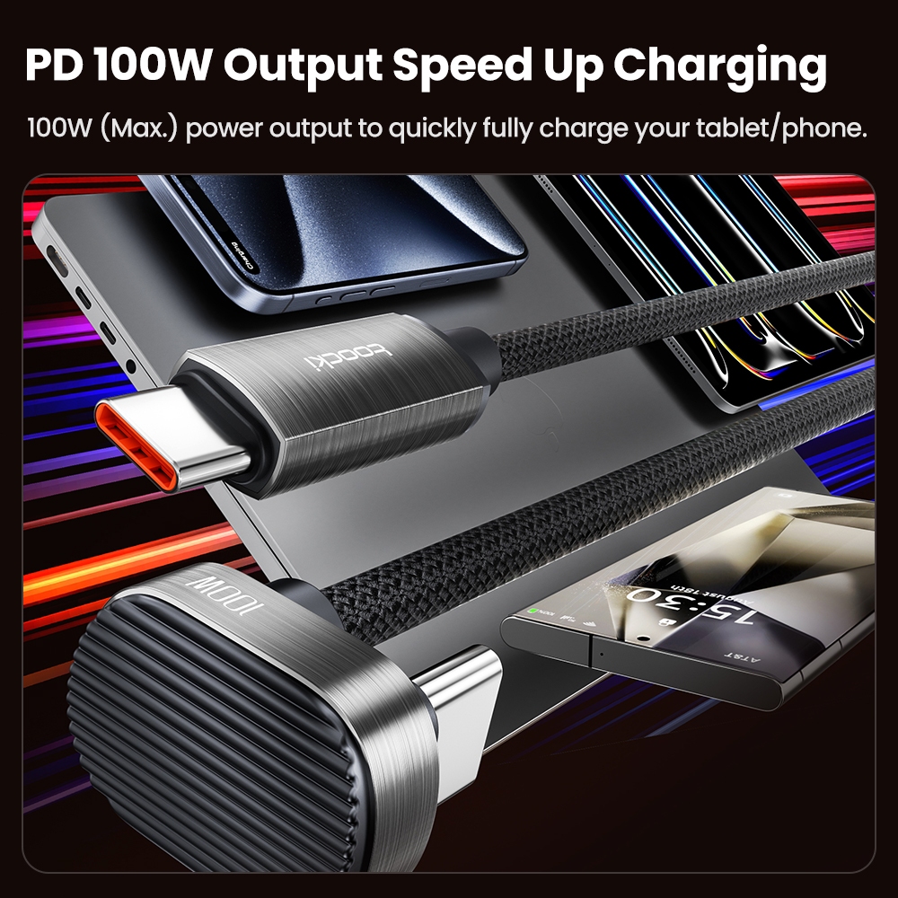 Cáp thiết kế khuỷu tay hình chữ U Toocki 100W Type C sang Type C với uốn 180 độ PD20W Loại C sang lOS Dây dữ liệu sạc USB C Cáp trò chơi