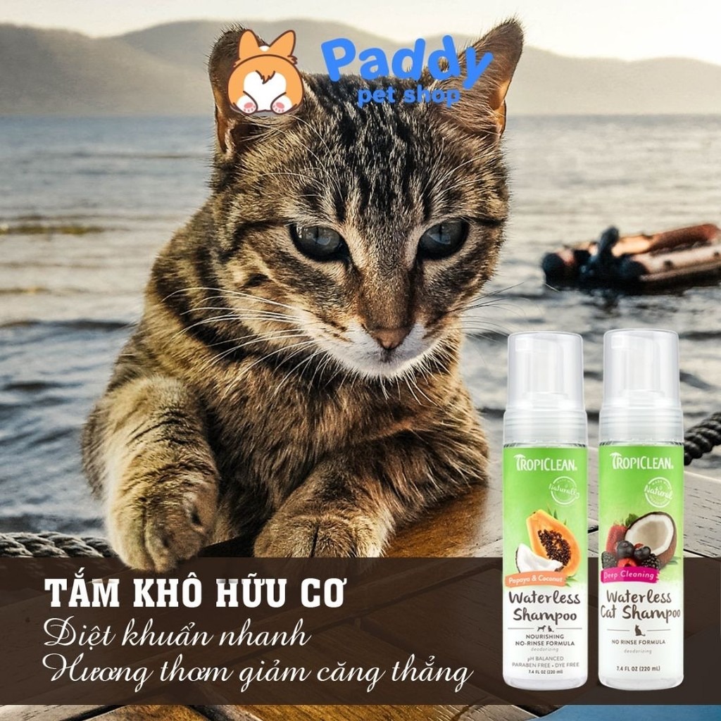 Dầu Tắm Khô Hữu Cơ Tropiclean Organic Waterless Shampoo 220ml