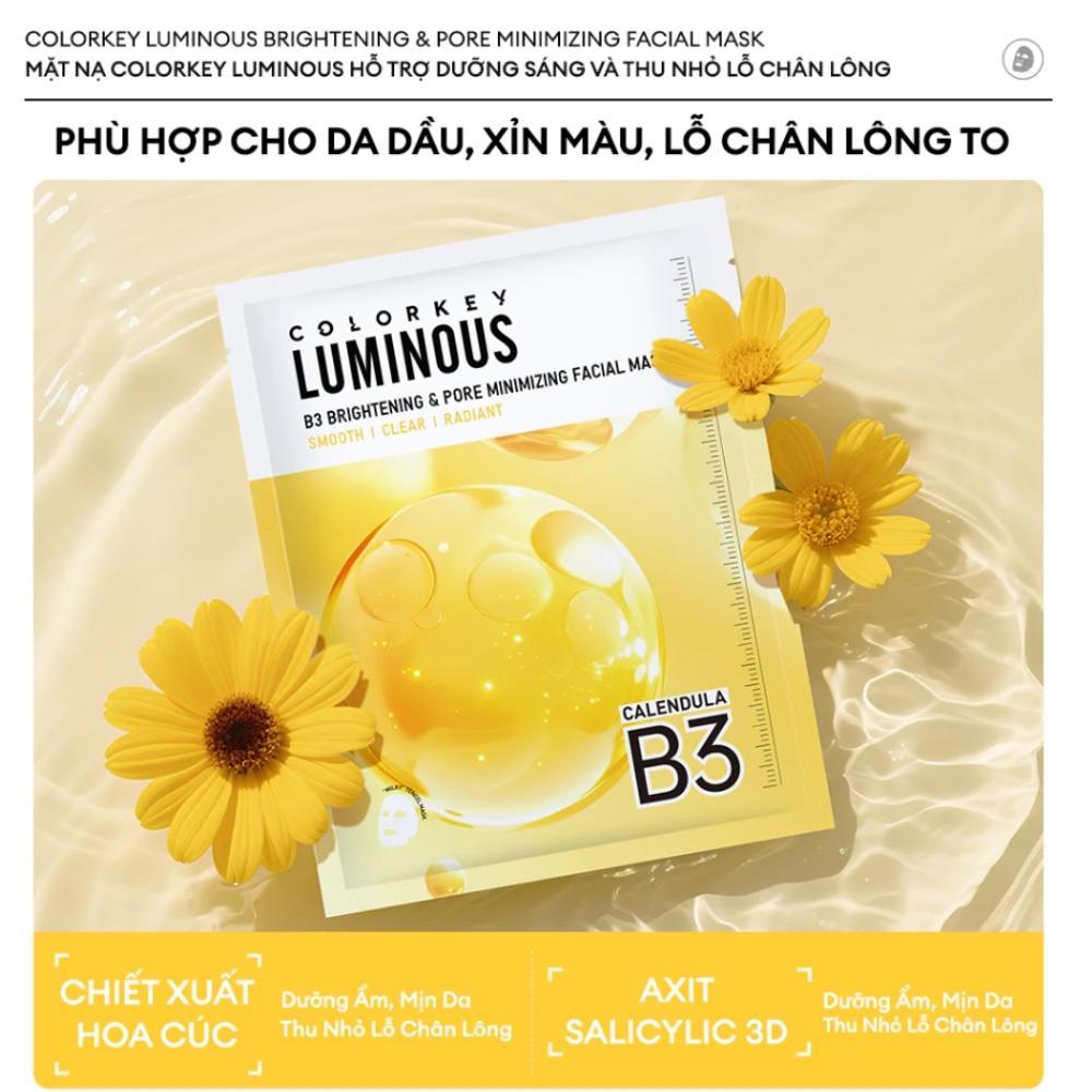 Hộp mặt nạ COLORKEY LUMINOUS B3 Facial Mask hỗ trợ dưỡng trắng, làm dịu và cấp ẩm cho da