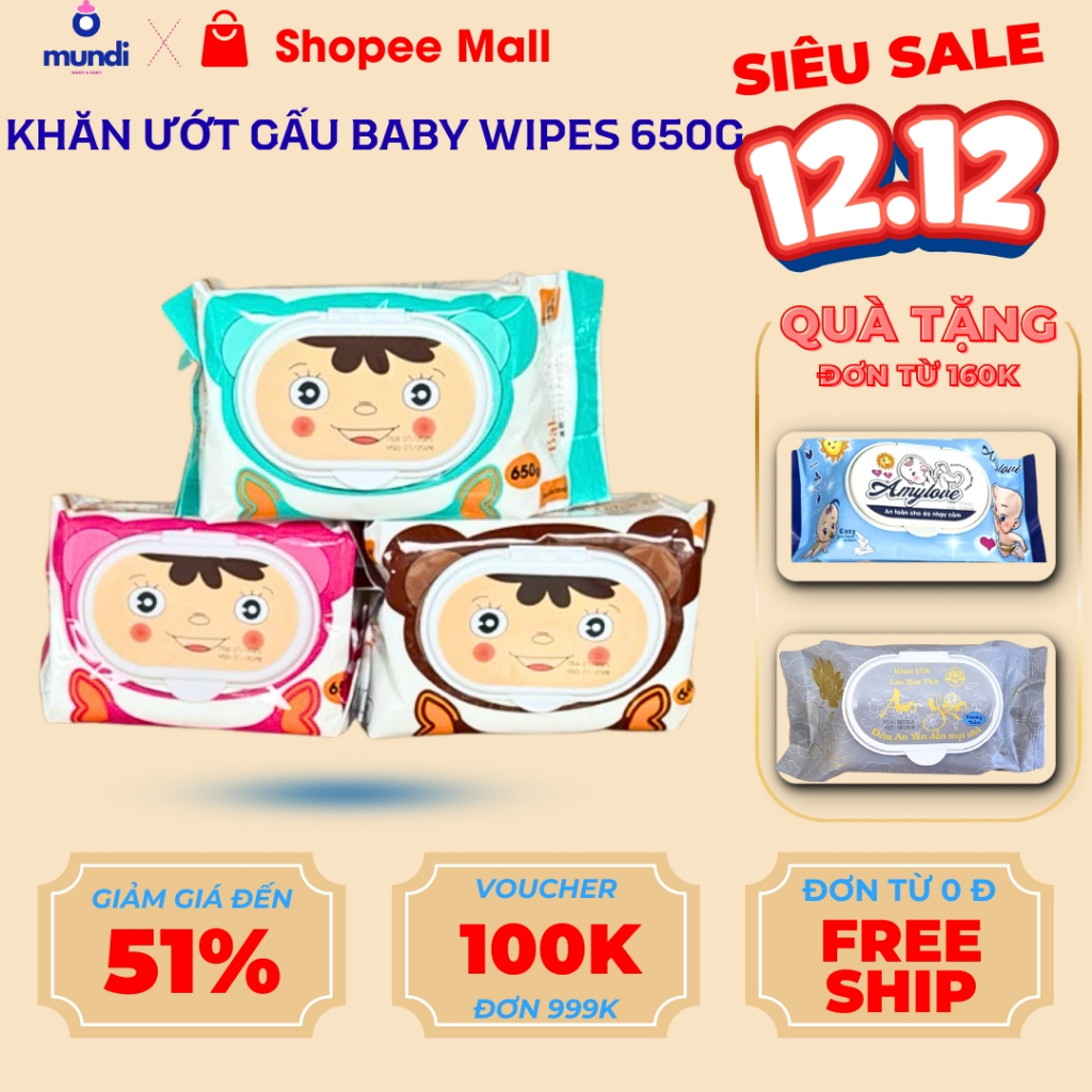 1 Gói Khăn Ướt Gấu 3T BABY WIPES nhiều màu sắc gói to 650 gram,khăn ướt không mùi, Khăn Lau Gấu 3T
