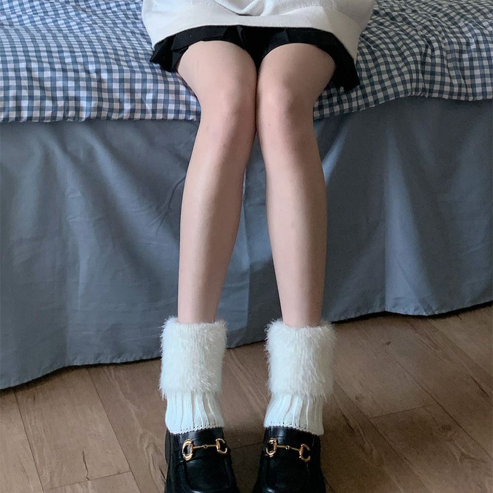Vớ Lông Thú Dày Dặn Giữ Ấm Chân Màu Trắng Thời Trang Thu Đông Cho Nữ Ốp