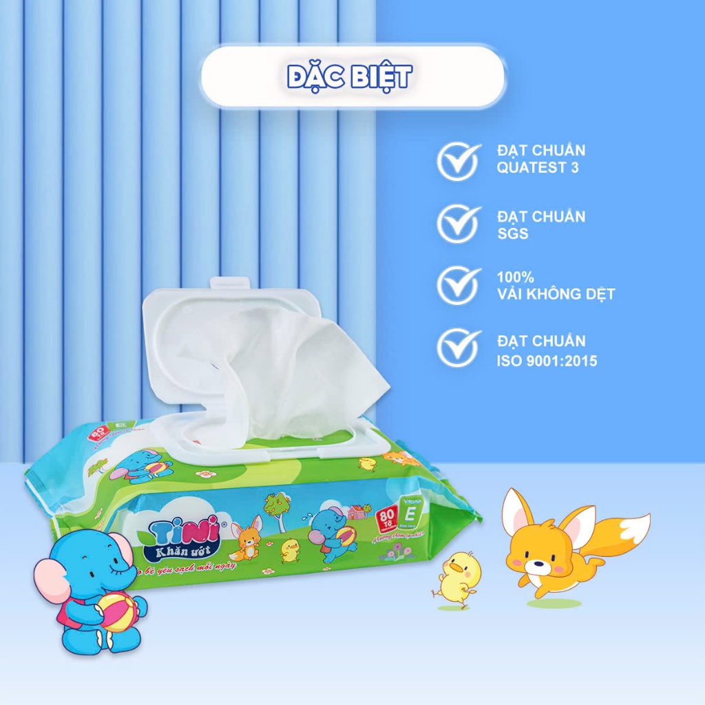 Thùng 32 Gói Khăn Ướt Tini Baby Wipes 80 Tờ Không Cồn Lành Tính Cho Da Bé Nano Tissue