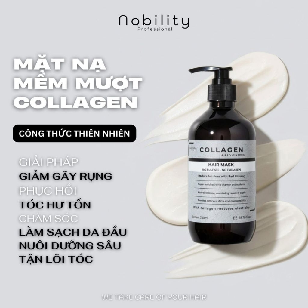 Dầu Gội Nobility Collagen & Hồng Sâm 750ml - Giảm Rụng Tóc, Phục Hồi Tóc Hư Tổn (Không Sulfate & Paraben)