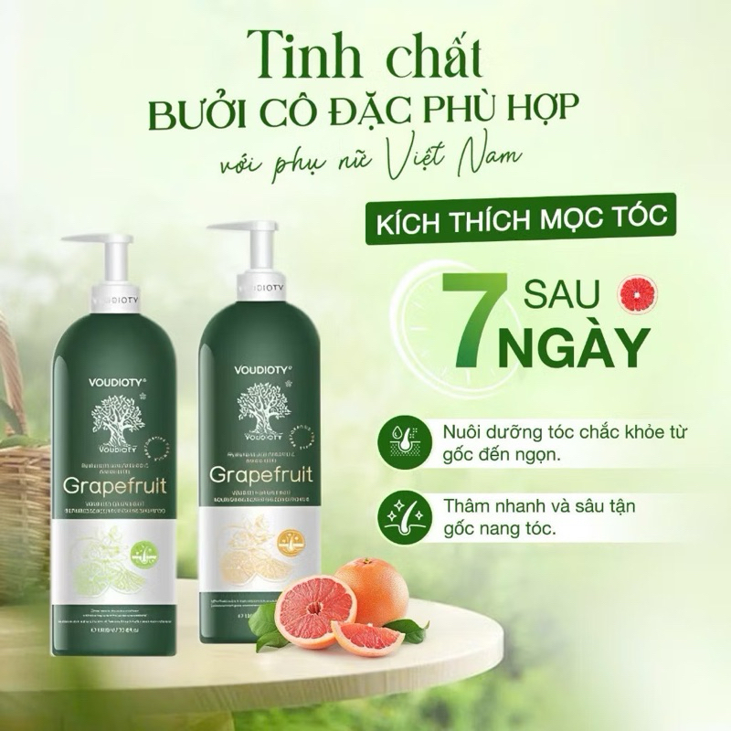 Cặp dầu gội xả Bưởi Biotin Grapefruit Voudioty. Giúp làm mềm mượt tóc, bảo vệ tóc, nhanh mọc tóc
