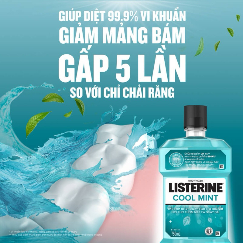 CHÍNH HÃNG | Nước súc miệng Listerine Cool Mint - Thơm mát, sạch sâu (Chai 250ml/750ml)