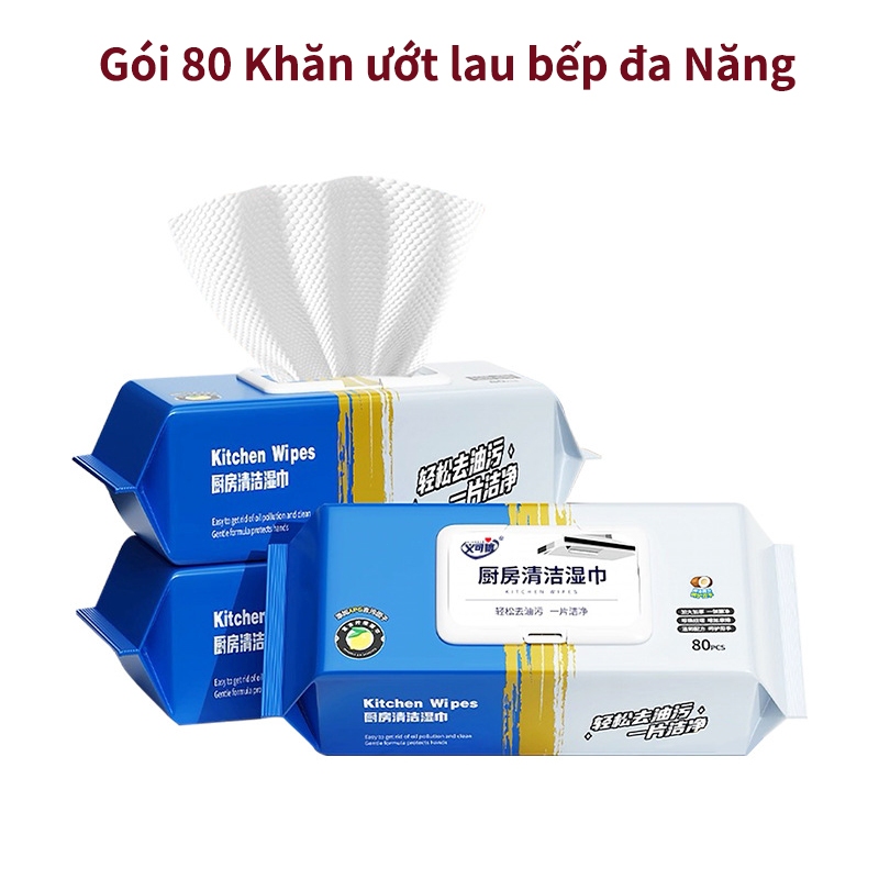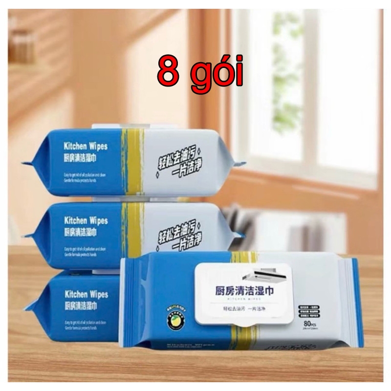 Combo 8 Gói Khăn Ướt Lau Bếp Đa Năng 80 Miếng, Tiết Kiệm Cho Gia Đình