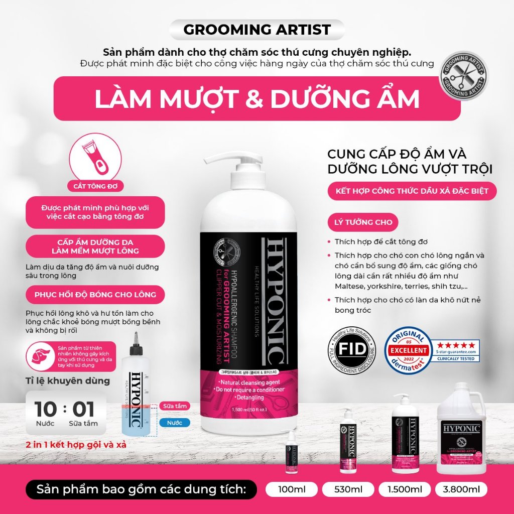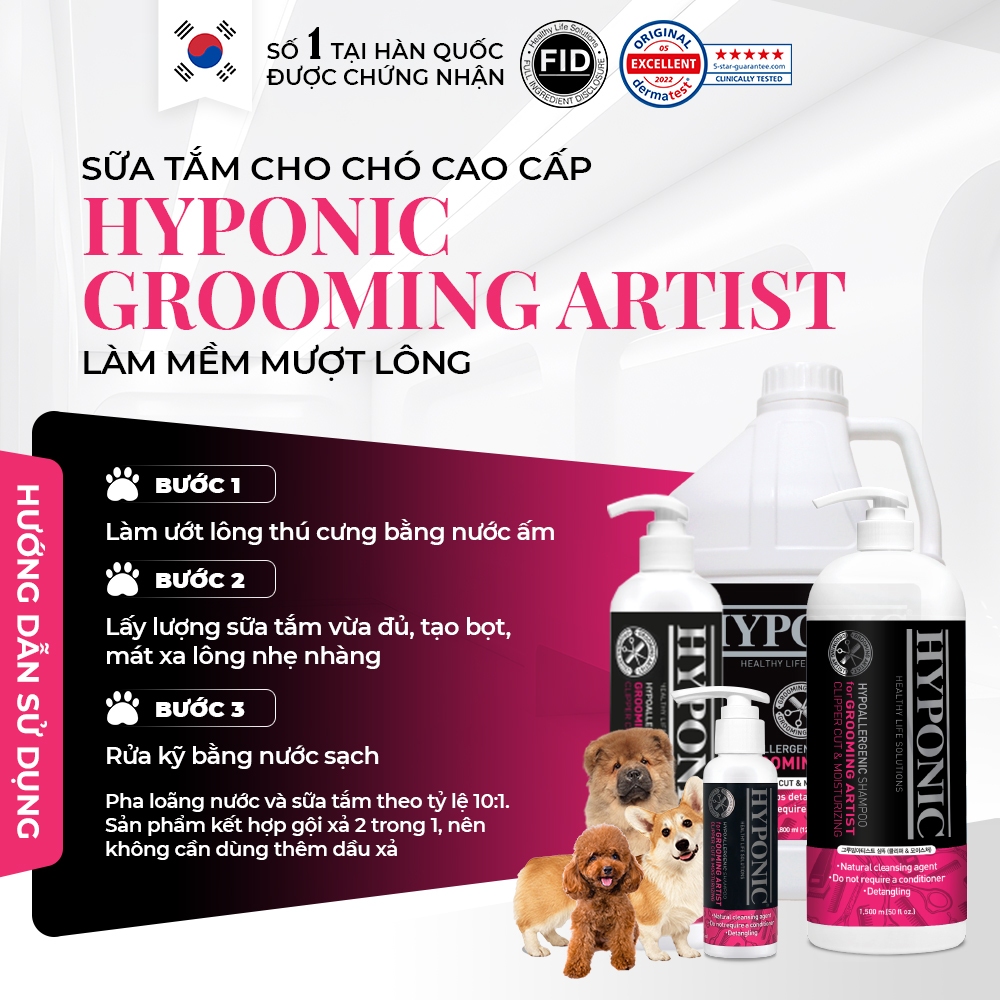 Sữa tắm cho chó cao cấp HYPONIC Grooming Artist, làm mềm mượt lông (dành cho tiệm spa thú cưng)