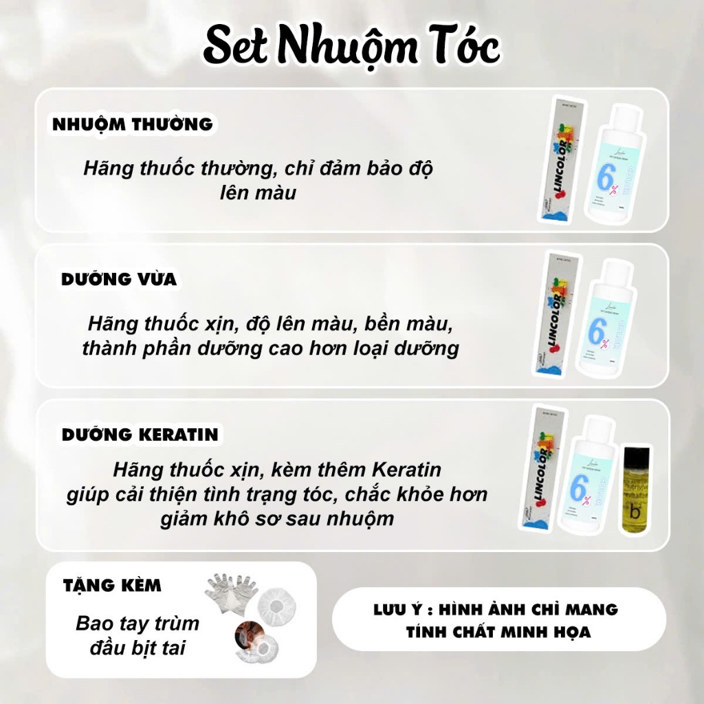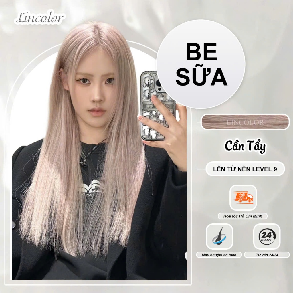 Thuốc nhuôm tóc, thuốc nhuộm tóc BE SỮA , LIN_COLOR, tặng kèm oxy trợ dưỡng và bao tay, mũ trùm, bịt tai