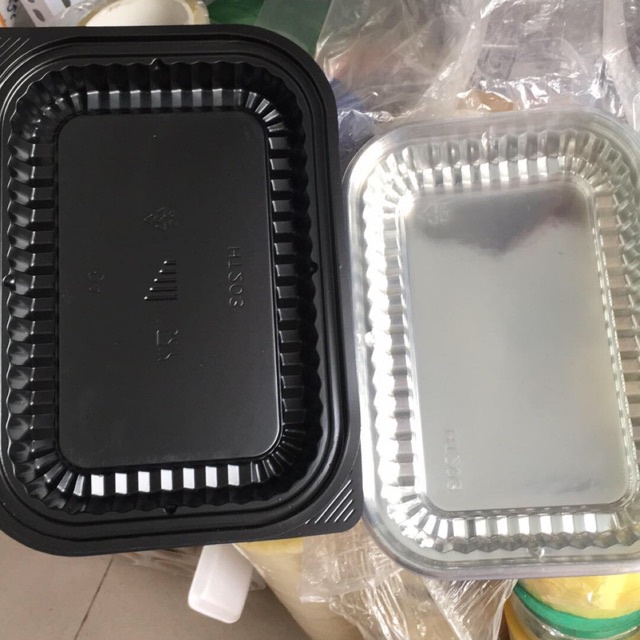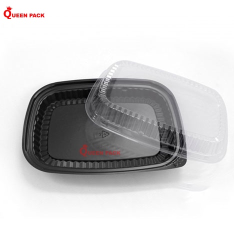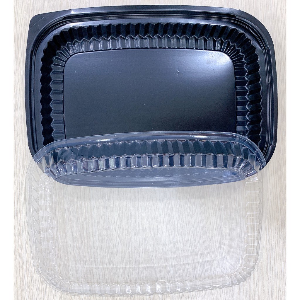 Sỉ 100 cái hộp cơm nhựa 1 ngăn đen loại to Mã HT203 Kèm nắp PET Trong dùng cho cơm văn phòng, quán ăn, nhà hàng
