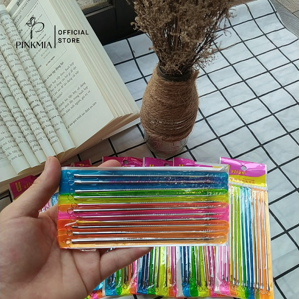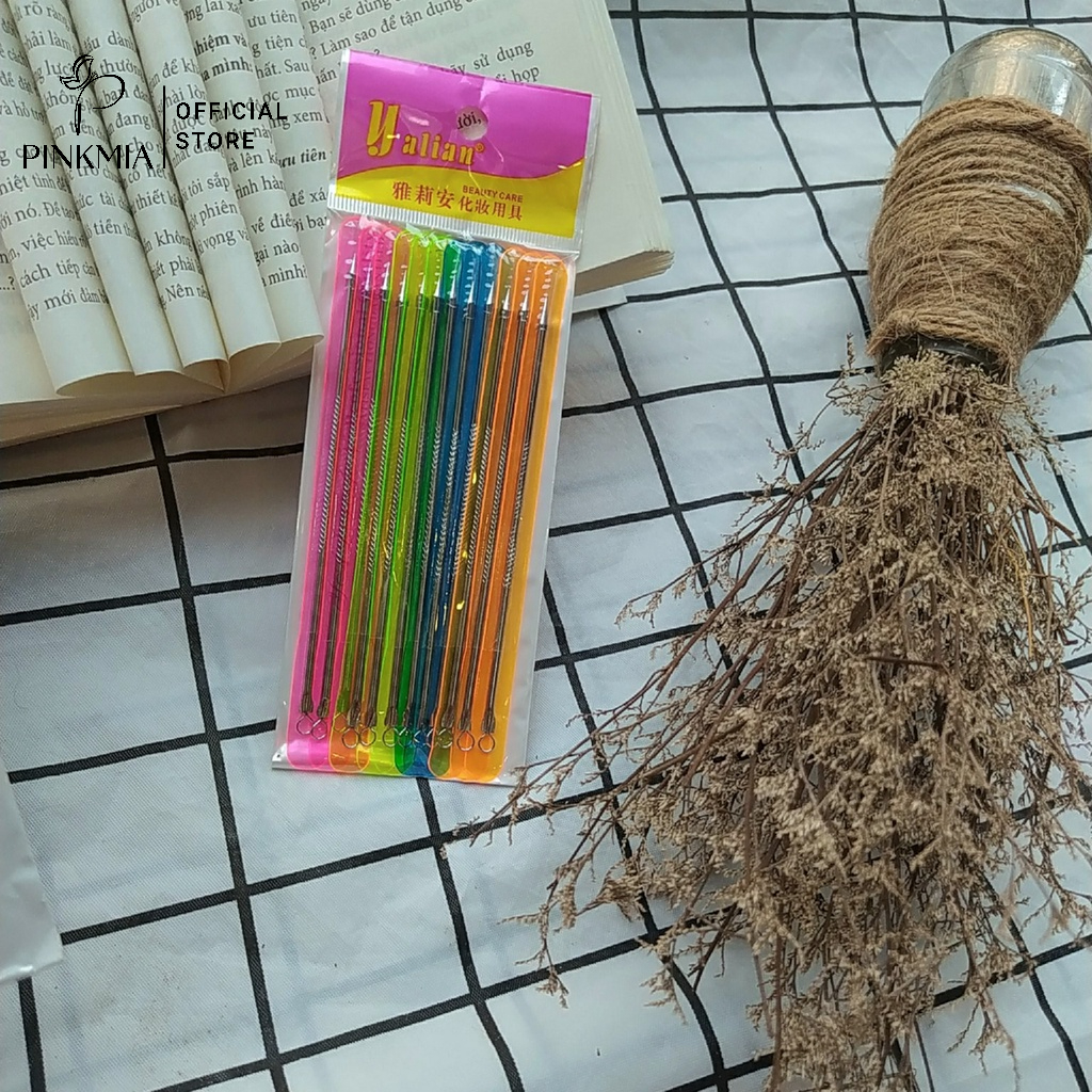 (Bán sỉ) Que nặn mụn Pinkmia cho Spa - Cây nặn mụn đầu đen cao cấp (Vỉ 12 que loại dài)