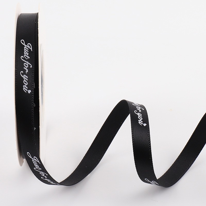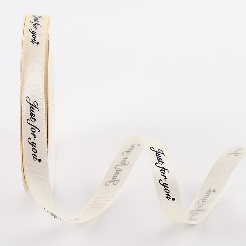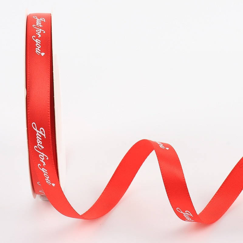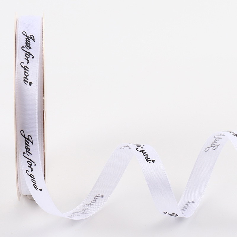 (Set 5m) Dây ruy băng lụa chữ Just For You bản 1cm - Gói hoa buộc quà