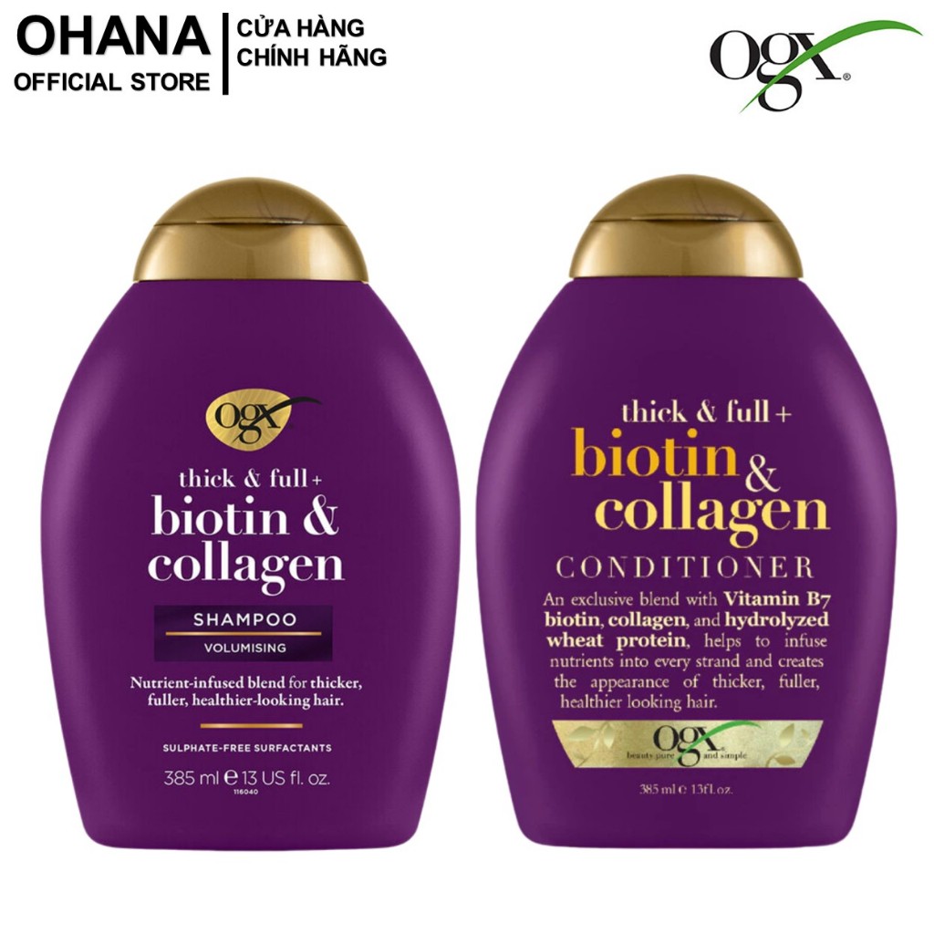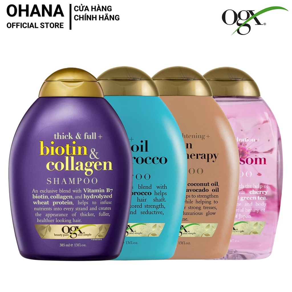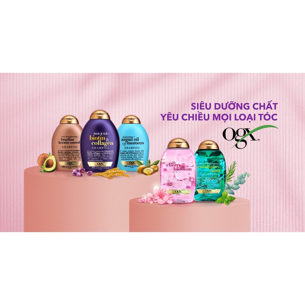 Dầu Gội và Xả dưỡng dày tóc, cấp ẩm, suôn mượt và phục hồi hư tổn OGX Biotin/Keratin/Argan/Cherry 385ml