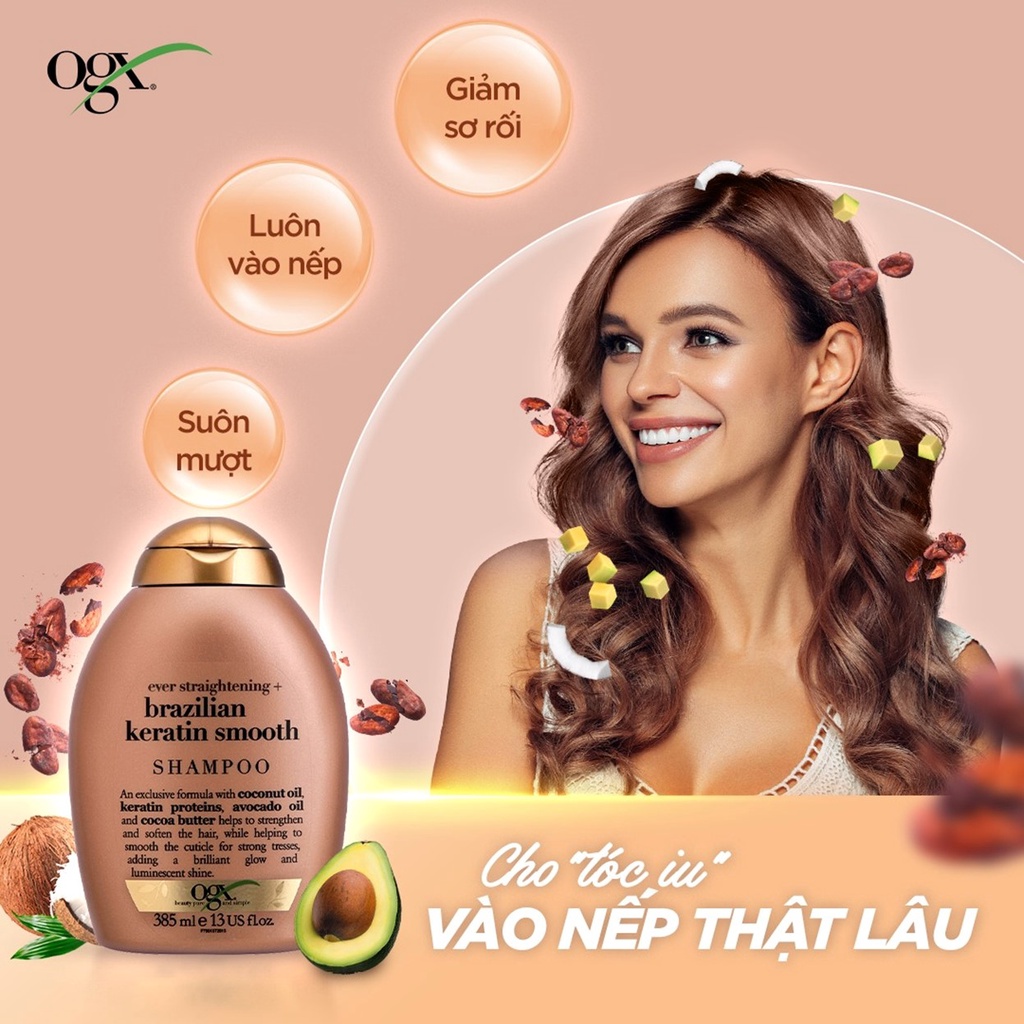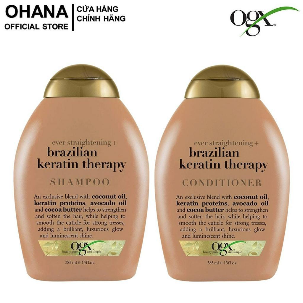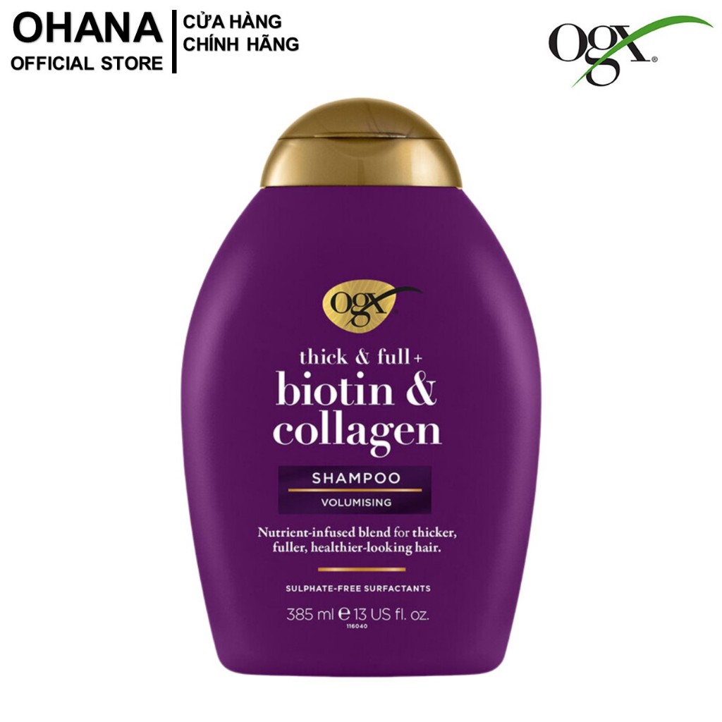 Dầu Gội và Xả dưỡng dày tóc, cấp ẩm, suôn mượt và phục hồi hư tổn OGX Biotin/Keratin/Argan/Cherry 385ml