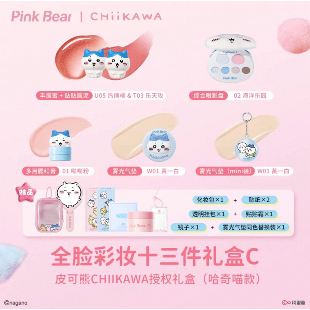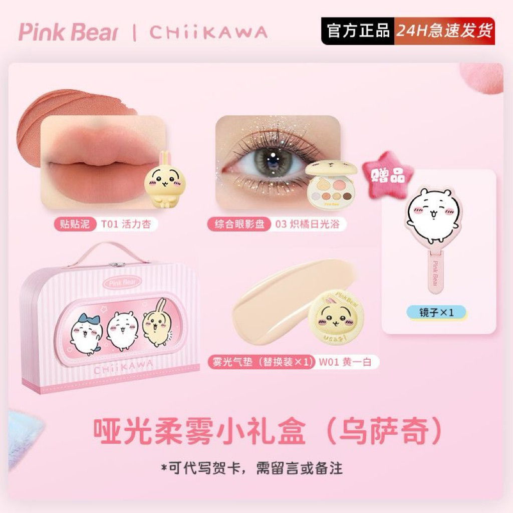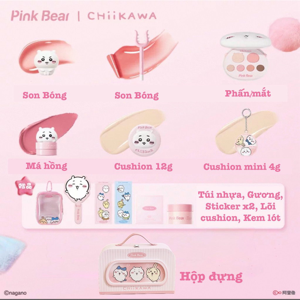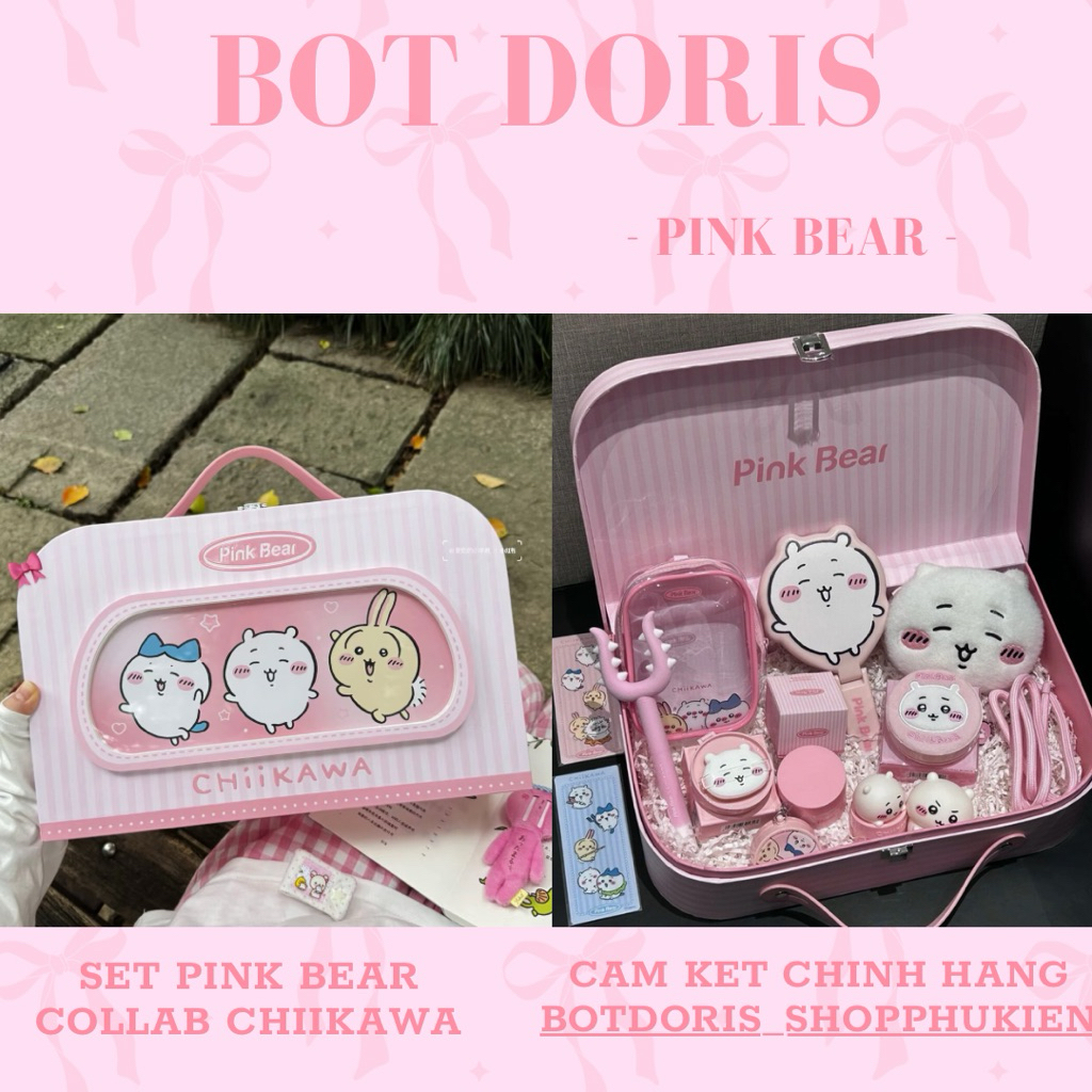 Set mĩ phẩm son phấn PinkBear collab Chiikawa, set quà tặng BOT DORIS