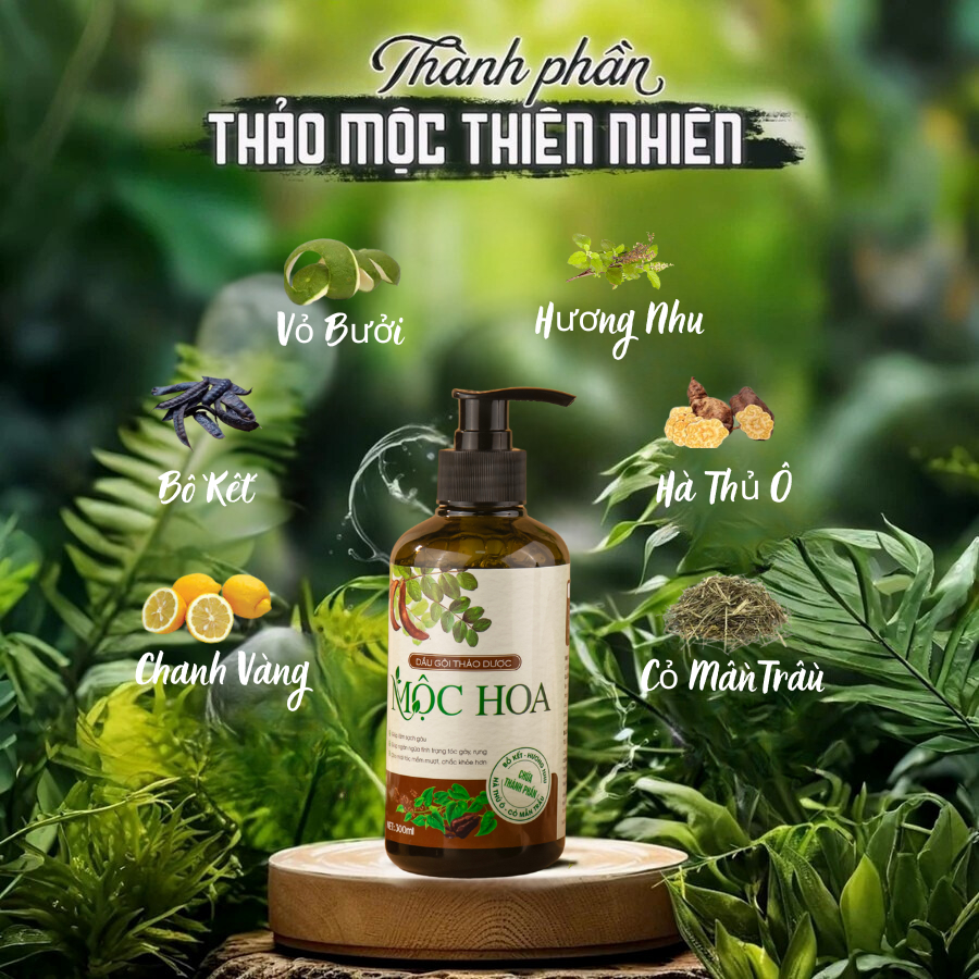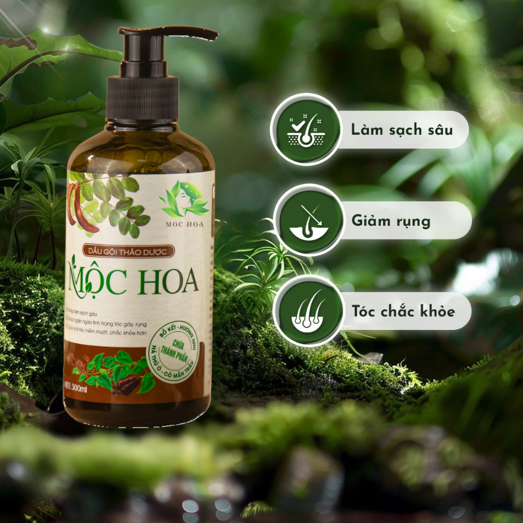 Dầu gội thảo dược bồ kết hương nhu Mộc Hoa 300ml ngăn rụng hỗ trợ kích mọc tóc