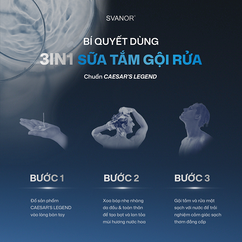 Sữa tắm gội nam 3 in 1 hương nước hoa Svanor 500ml chuẩn xuất khẩu làm sạch sâu - Cesar's Legend