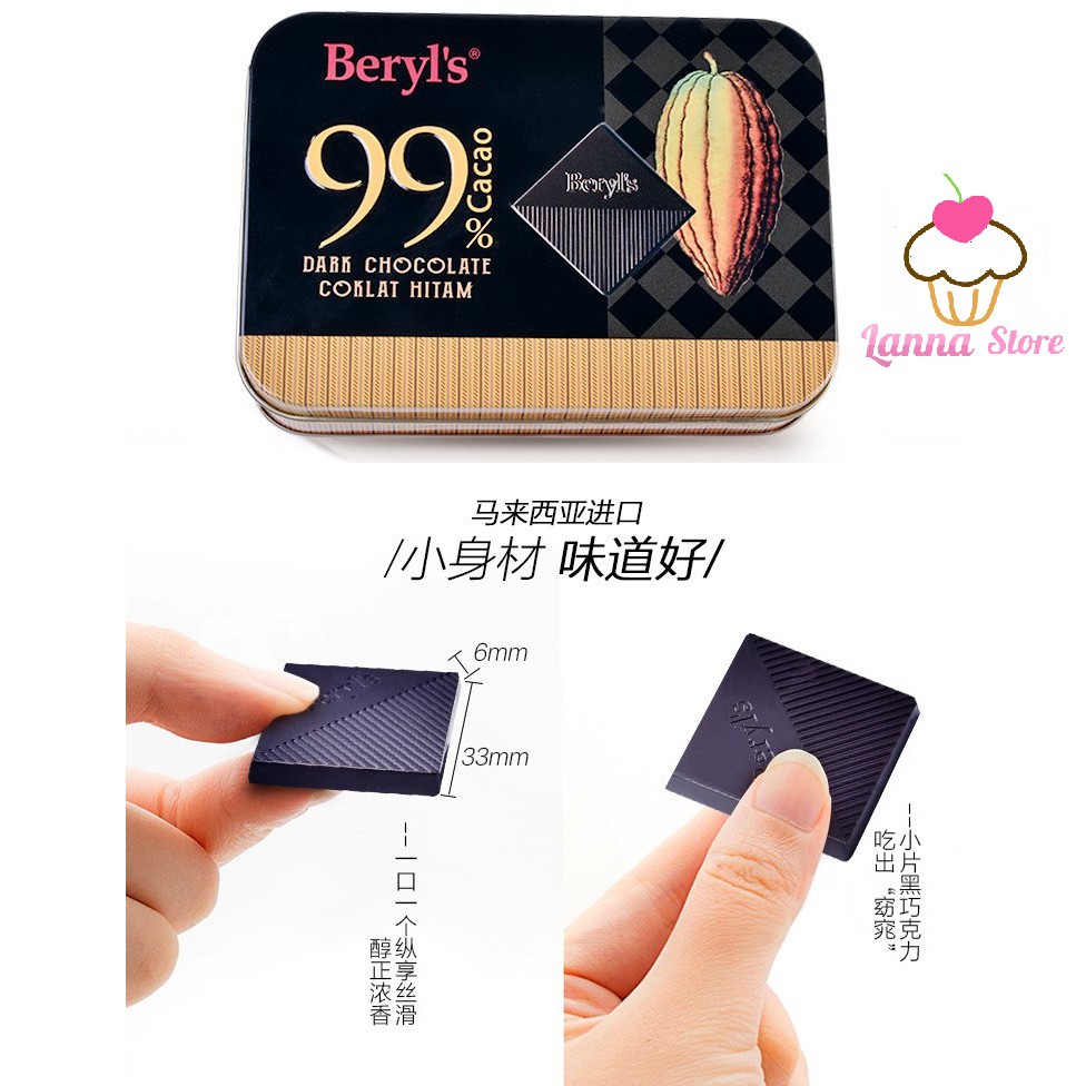 (2 loại) Sô cô la đắng Dark Chocolate Beryl's hộp 108gr (80% & 99% Cacao) Malaysia