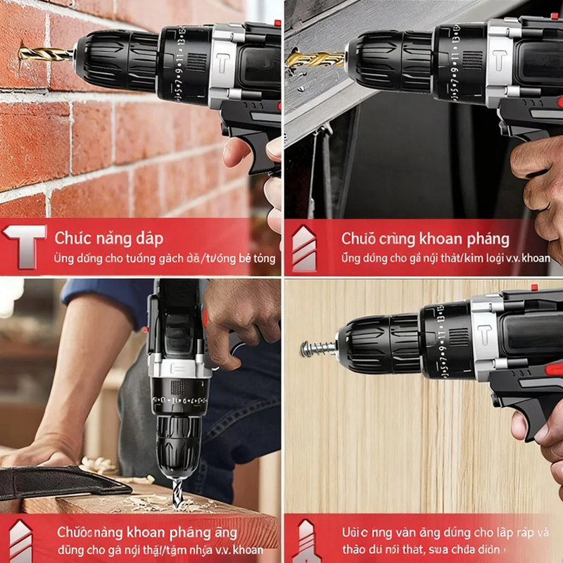 TIMTOL Máy khoan pin Máy khoan pin không chổi than đa năng cao cấp 36VF dùng để khoan tường bắt vít khoan sắt