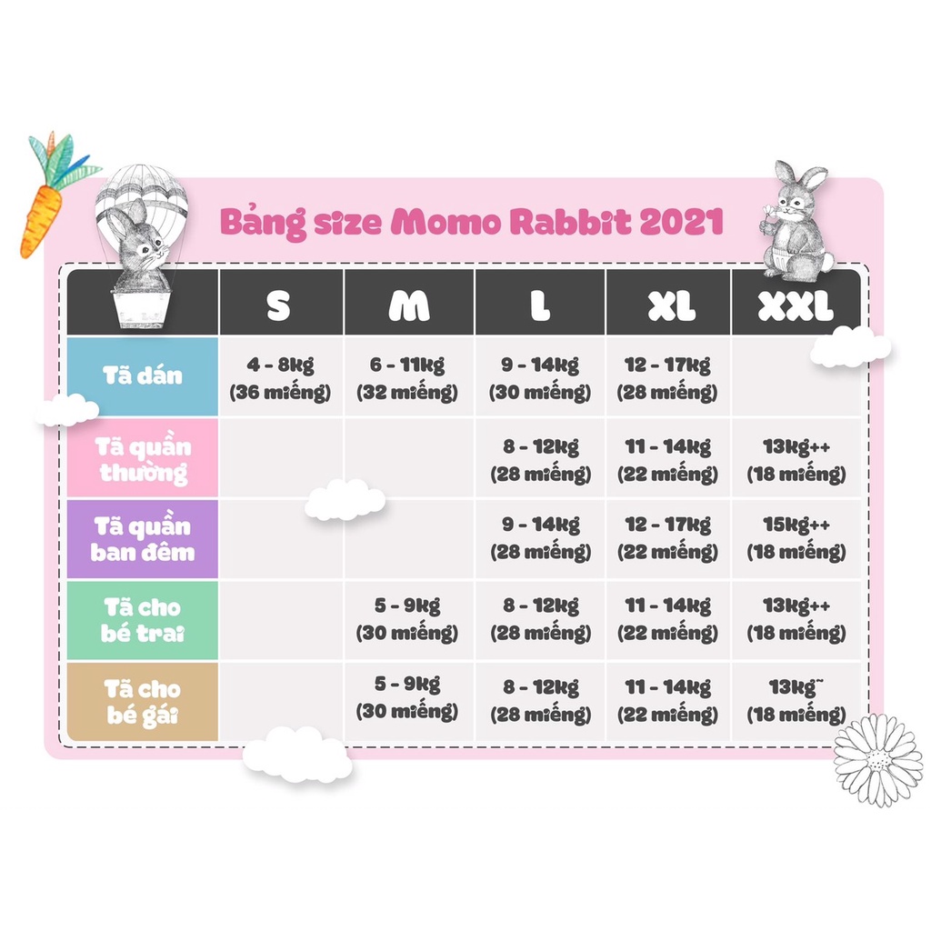 [Giá tốt nhất] Bỉm dán/quần Momo Rabbit nội địa HÀN Quốc NB42/S36/M32/M30/L28/xl22/xxl18