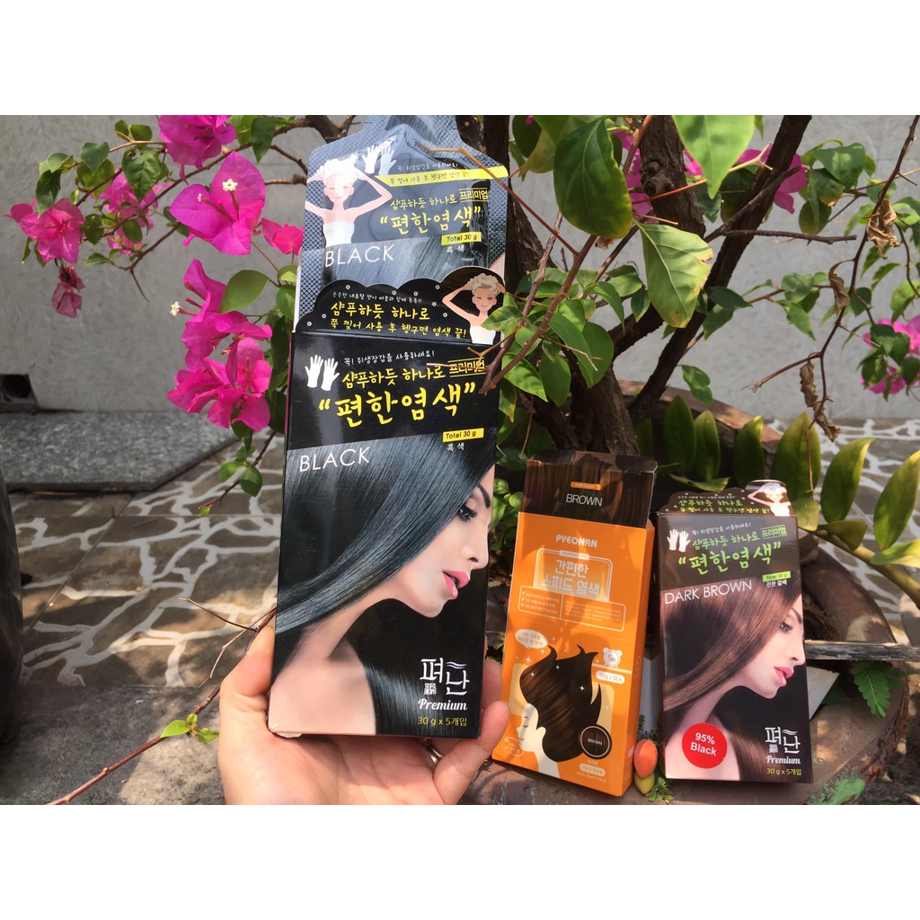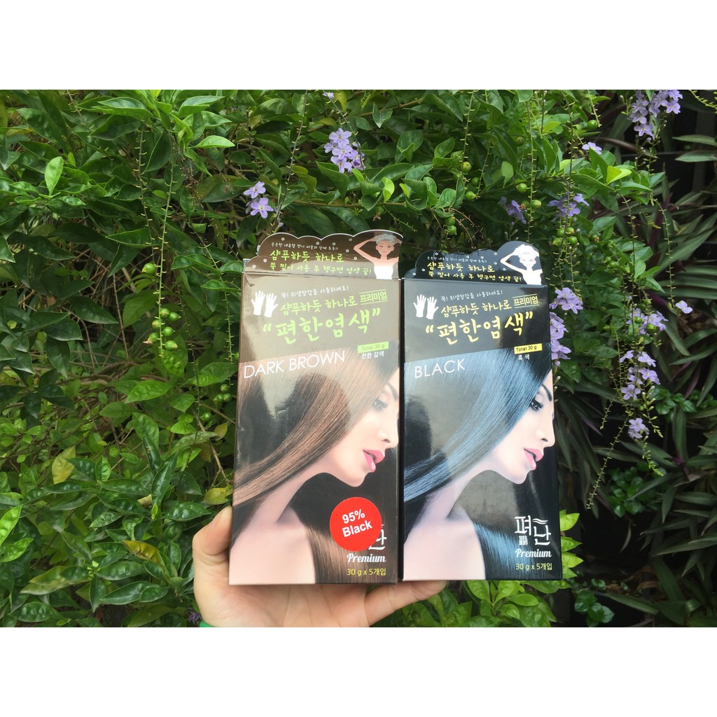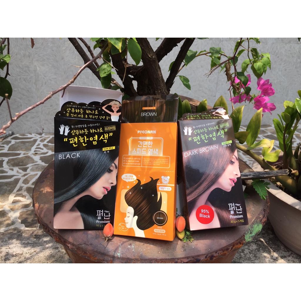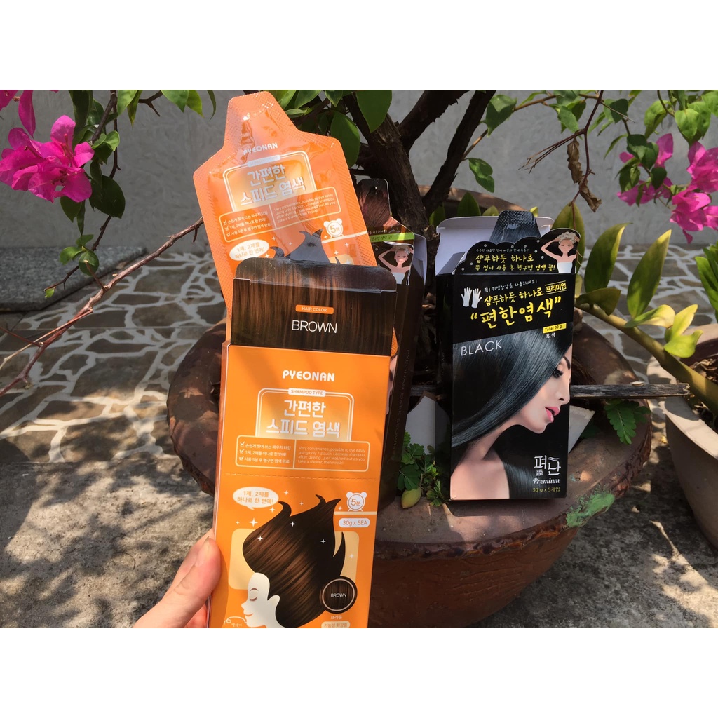 Dầu gội đầu khô Pyeonan làm đen tóc bạc, nâu tóc Hàn Quốc 5 gói/ 30 g/ gói