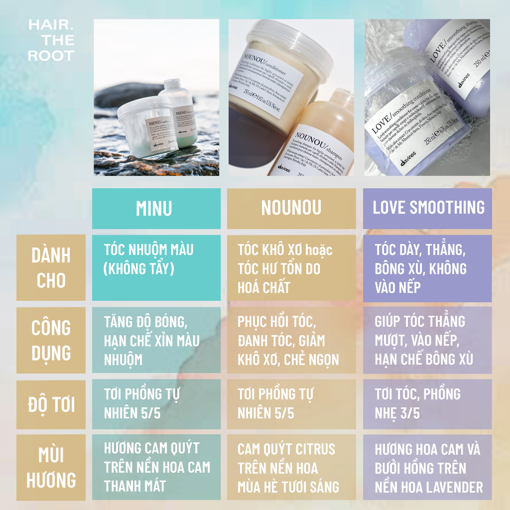 Dầu Gội Xả, Ủ Tóc Davines Nounou, Minu, Love Smoothing Phục Hồi Tóc Hư Tổn, Nhuộm Tẩy, Hàng Công Ty