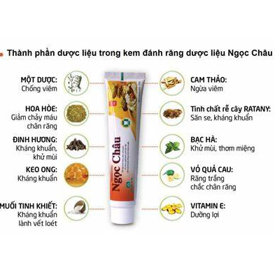 (Combo 5 tuýp) Kem đánh răng dược liệu Ngọc Châu 20 g*5 tuýp