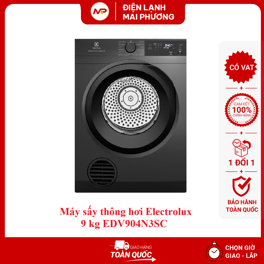 [FREESHIP+LẮP ĐẶT HN]Máy sấy quần áo thông hơi Electrolux 9 kg EDV904N3SC - Bảo hành 24 tháng