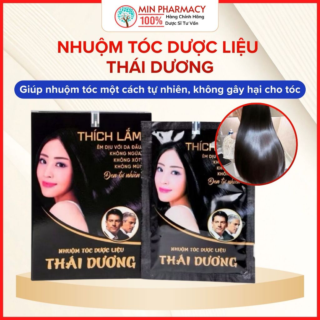 Mẫu mới GEL Nhuộm Tóc Dược Liệu THÁI DƯƠNG - Dầu gội nhuộm tóc phủ bạc an toàn Hộp 5 gói.