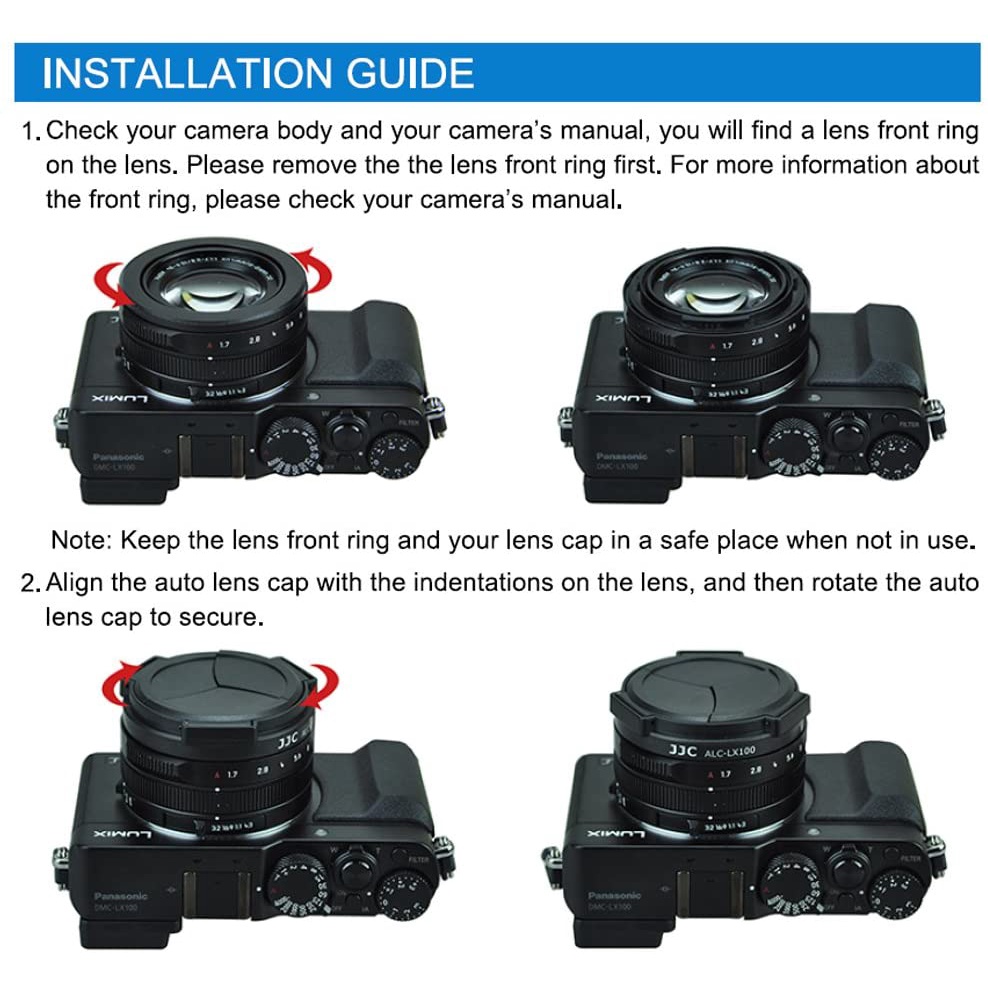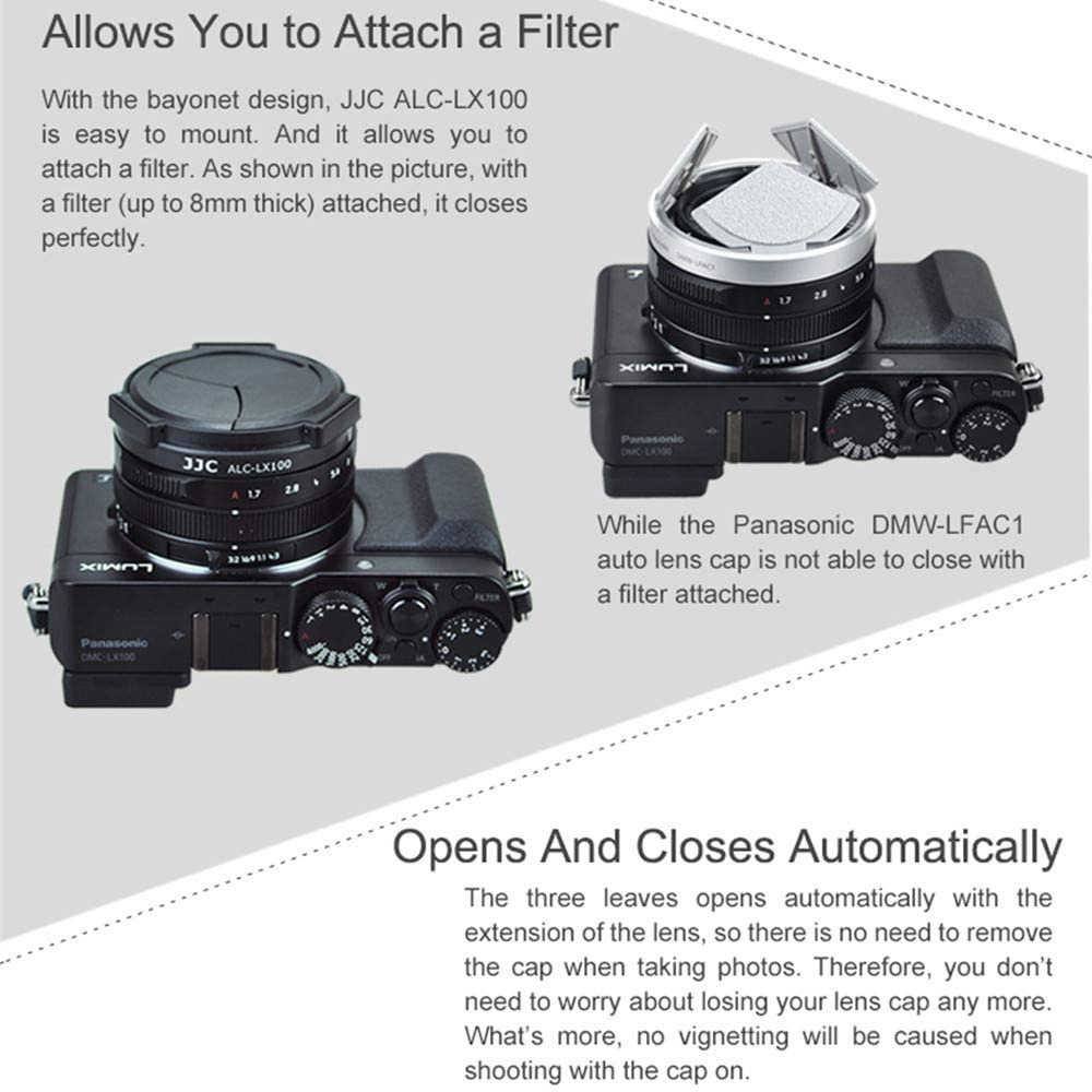 JJC Nắp Đậy Ống Kính Tự Động Cho Máy Ảnh DLUX8 D-LUX8 DLXU7 D-LUX7 Panasonic Lumix DMC- LX100 LX100II Leica D-LUX (Loại 109) LUX8 LUX7 Thay Thế DMW-LFAC1