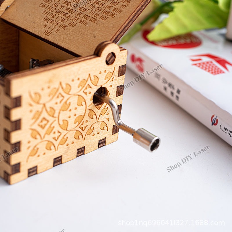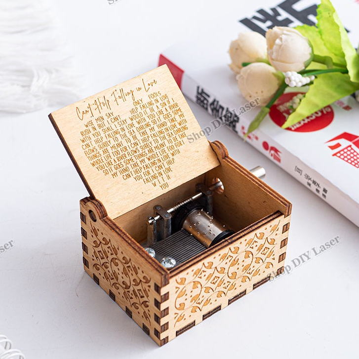 Hộp nhạc gỗ Valentine Fall in love Love River khắc màu UV quà tặng nhắn gửi yêu thương quay bằng tay