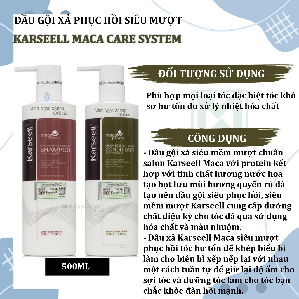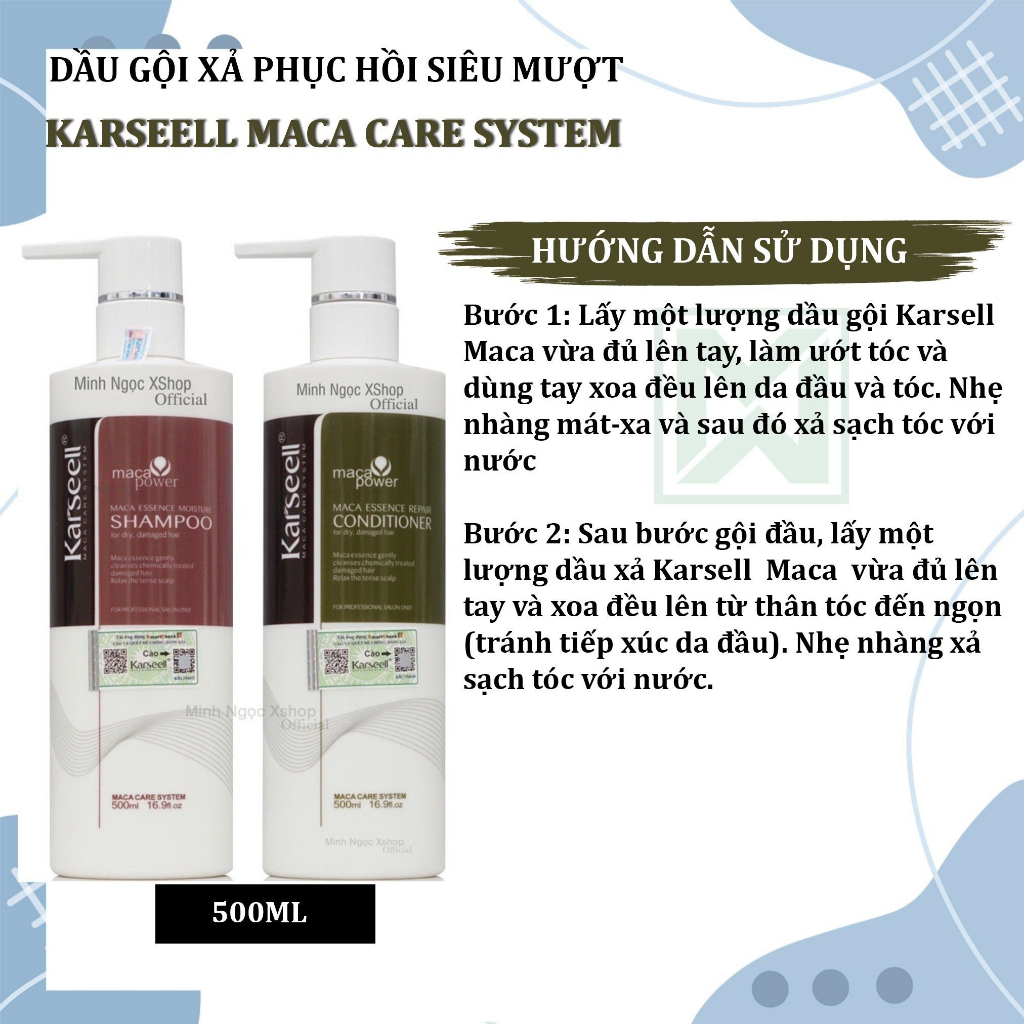 Dầu gội xả phục hồi, chống gàu, chống rụng Karseell Maca 500ml