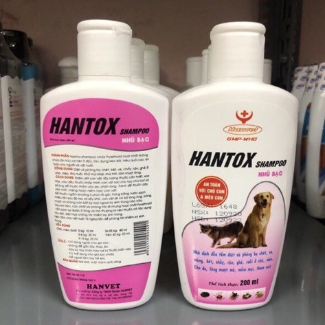 Sữa Tắm Trị Ve Rận Bọ Chét Mòng Chấy Mượt Lông Chó Mèo Hantox Shampoo Hồng Nhũ Bạc 200ml
