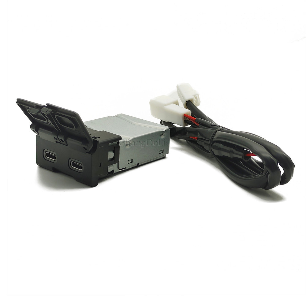 12 / 24V Sạc Xe Hơi 2.1A Ổ Cắm Chống Bụi Dual Type-C Ổ Cắm Sạc Bộ Chuyển Đổi Nguồn Cho Xe Toyota Camry Avalon Highlander Levin RAV4